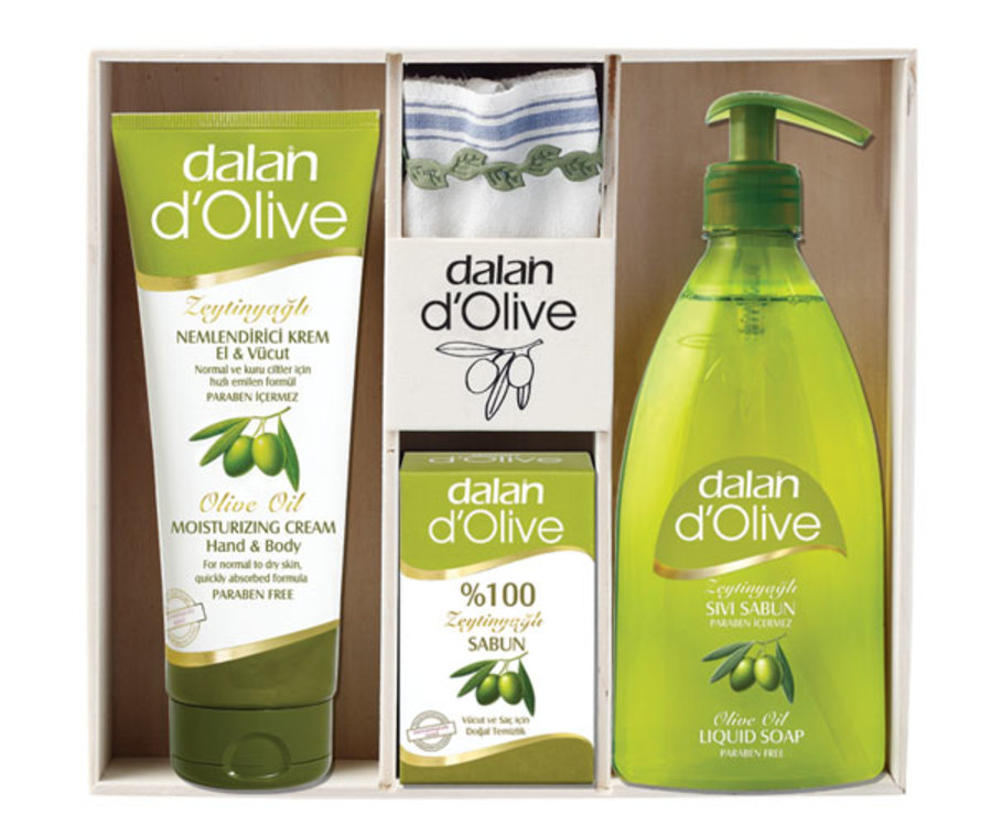 Olive oil Liquid hand soap, Hand & Body Cream 250ml, 100% Olive Oil Soap and Silk scrub traditionally used in Turkish baths are presented as a gift set to provide the ultimate skin care with the nourishing properties of Olive Oil.